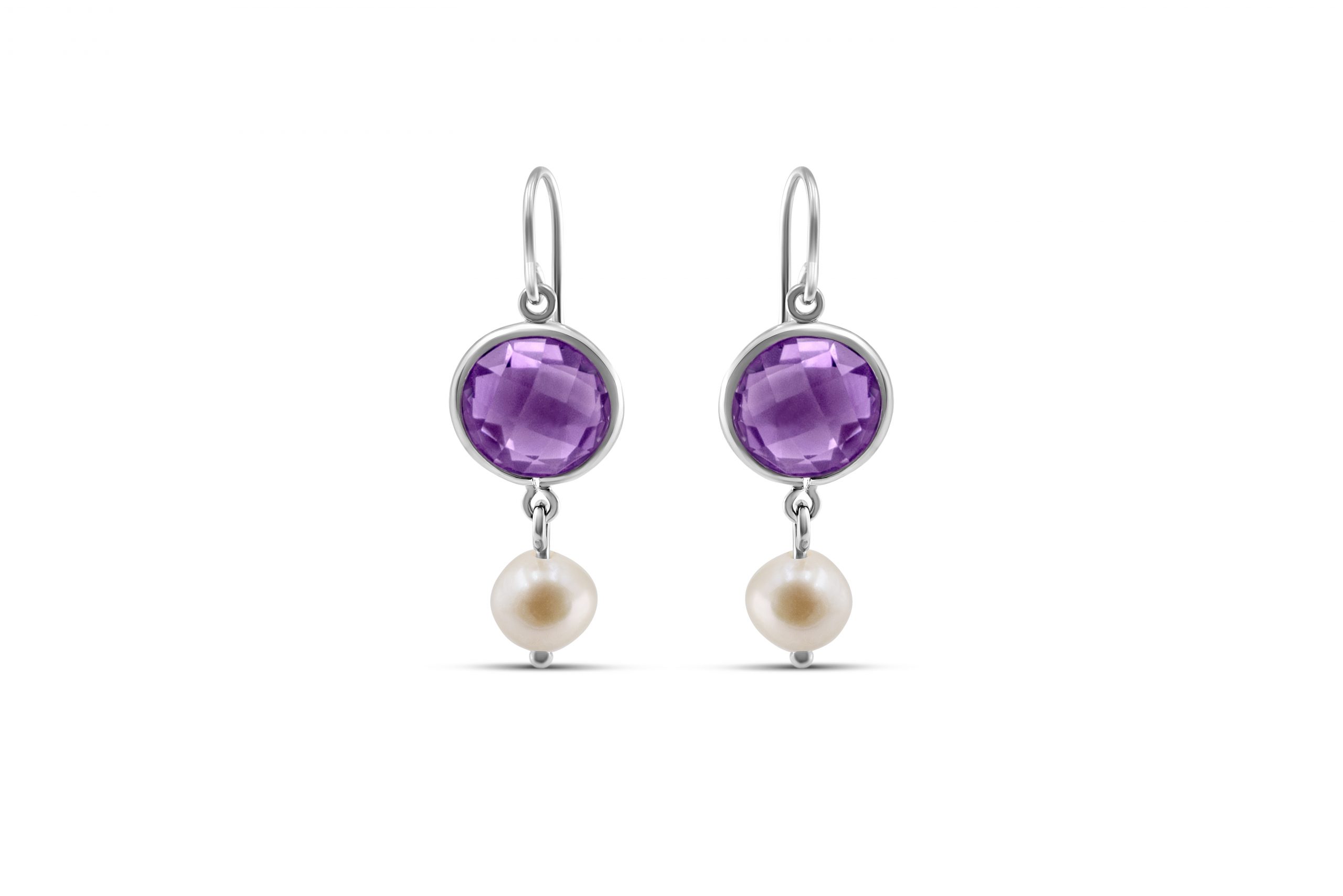Ohrgehänge aus 925er Sterlingsilber mit zwei Amethysten und zwei Süßwasserperlen